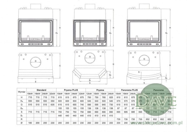 Wkład kominkowy z płaszczem wodnym PL-190 Standard 12kW/UO