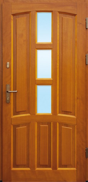 Drzwi zewnętrzne drewniane DS17 szkło wypukłe reflex brąz